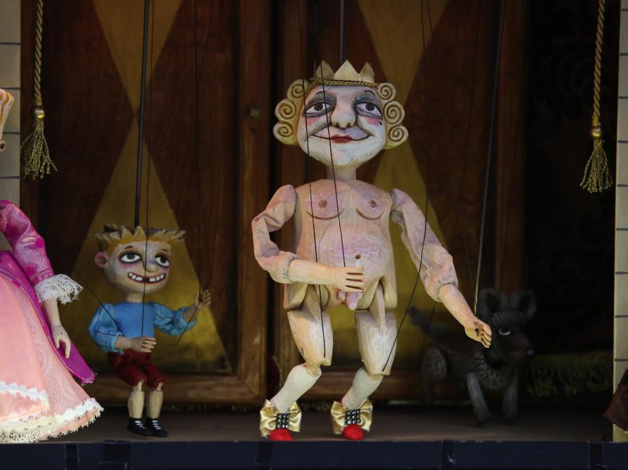 Planen var, at Teatret Svanen skulle præsentere Djævelens tre guldhår, men der er desværre sket et uheld med dukkerne.