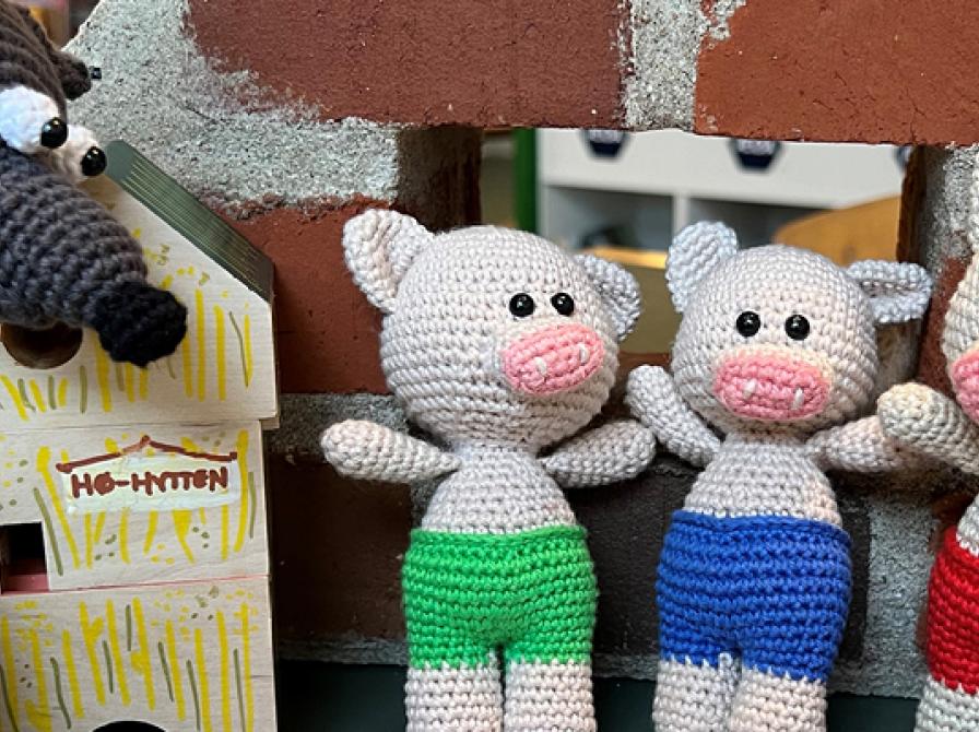 Ballerup BibliotekKom til en hyggelig stund på biblioteket, hvor vi leger, synger og er kreative med det klassiske eventyr om de 3 små grise og ulven.