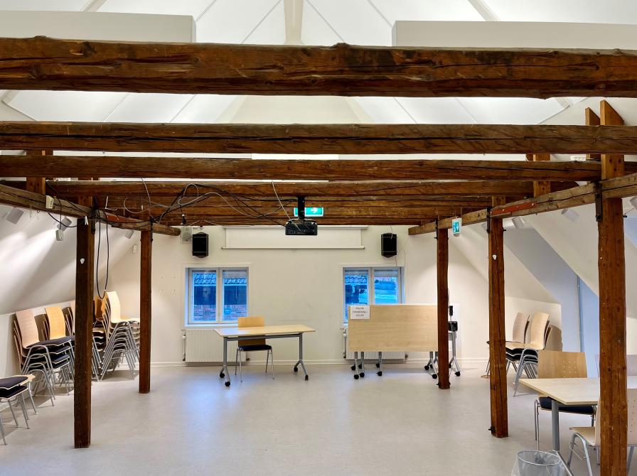 Hvis du skal bruge salen, skal du være opmærksom på, at du skal have tilsendt en kode fra vores kollegaer i huset, inden du kan få adgang til lokalet. Vores kollegaer sender løbende koder ud.