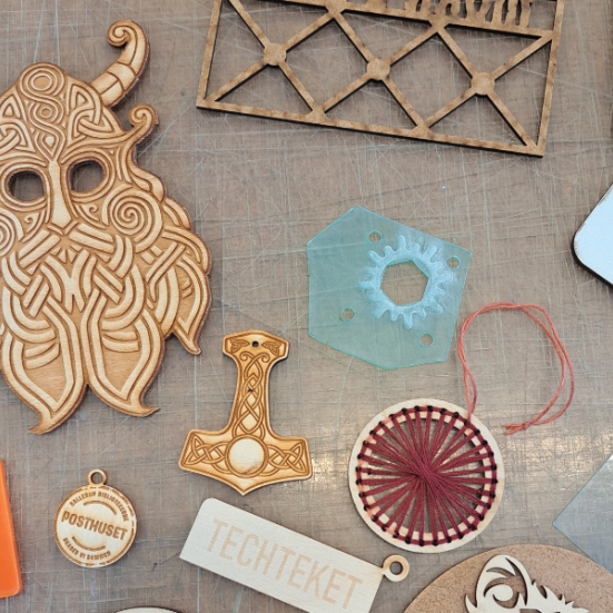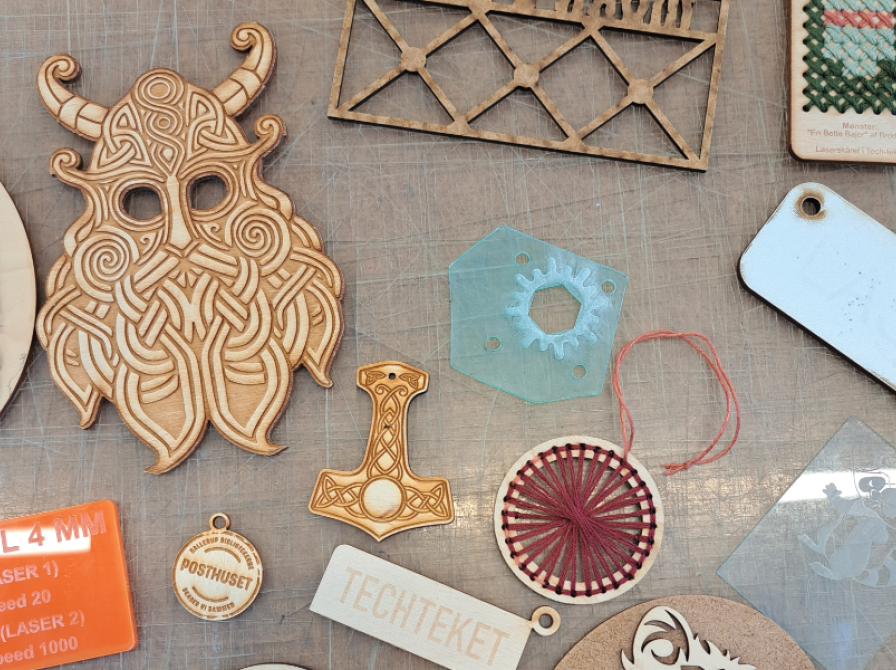 I Tech-teket har vi et udvalg af materialer til salg til laserskæreren. Vi har primært MDF, finér, akryl og divserse pap-kvaliteter til salg.